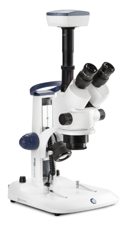Microscopio con zoom estéreo trinocular StereoBlue, objetivo con zoom de 0,7x a 4,5x, aumento de 7x a 45x, soporte ergonómico con iluminación LED incidente y transmitida - Stereoblue