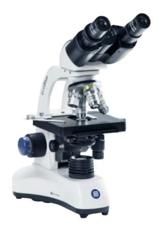 Microscopio Binocular EcoBlue,10x/18,achro 4 10 40 100, platina mecánica, enfoque coaxial, LED recargable - Ecoblue
