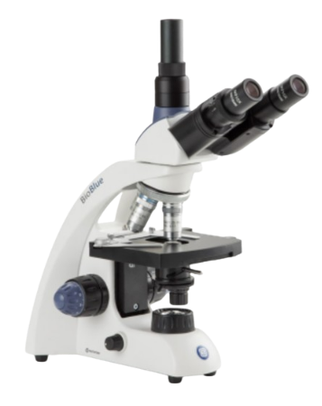 Microscopio trinocular BioBlue SMP 4/10/S40/S100x objetivos de aceite con platina mecánica e iluminación inalámbrica NeoLED™ de 1 W - Bioblue