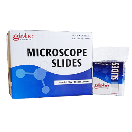 Portaobjetos de vidrio de 25 x 75 mm con bordes biselados a 45 grados y esquinas recortadas - Globe Scientific